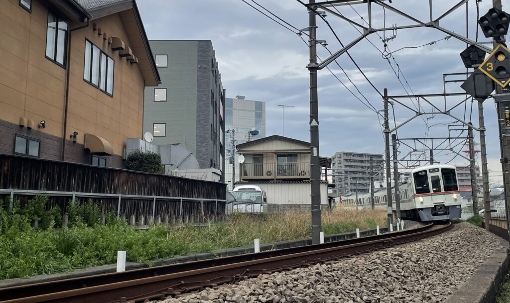 踏切を渡ってカーブの内側・外側の両方から撮影場所を選択可能です。